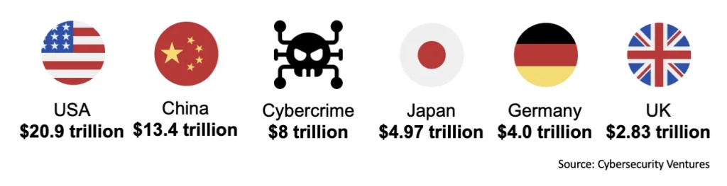 - The cost of cybercrime damage in 2023 is predicted to be $8 trillion (Cybersecurity Ventures)