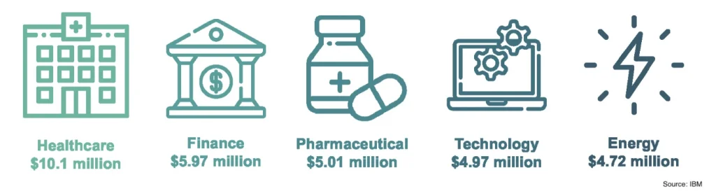 - For the 12th year in a row, data breaches in the healthcare sector had the highest average cost of a breach at $10.10 million dollars (IBM)
