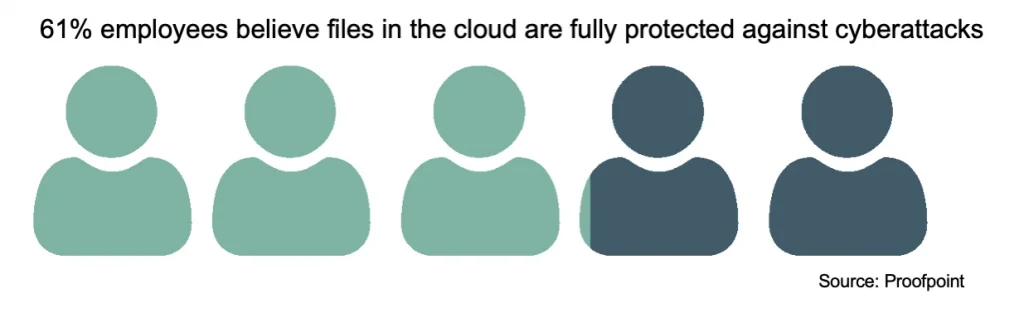 - 61% of employees think that files stored in cloud services are always safe from malicious actors and cybercriminals (Proofpoint)